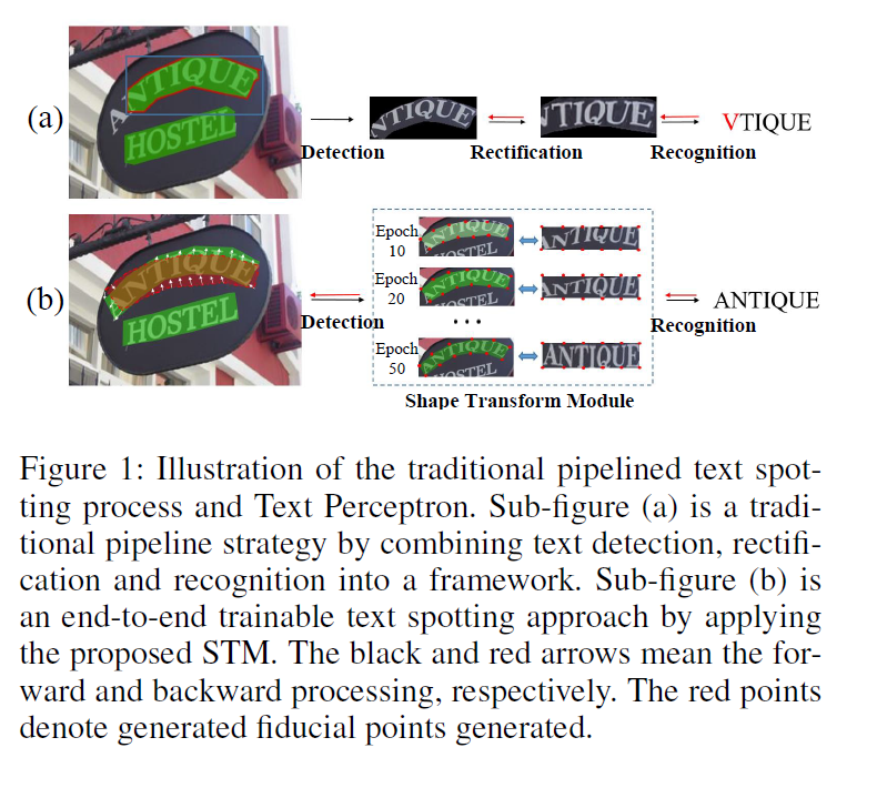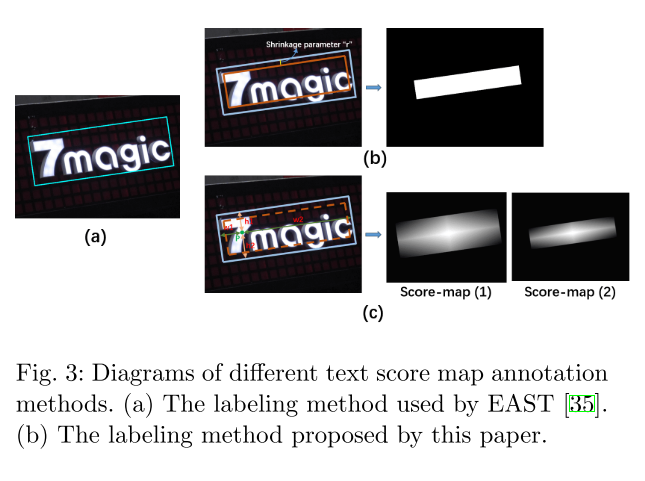 多任务学习问题:一些经典的单阶段方法,如EAST[35]采用从同一卷积网络中获取文本得分图和回归任务所需特征的策略。然而,回归信息作为一种距离测度,不能很好地与基于图特征的文本评分图共享CNN网络提取的特征,其性能略弱于两级检测器。