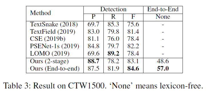 这里作者主要做的是分割,所以着重分析了分割的问题。第一个是不精确的分割标签,这一点其实是很有道理,我们很早也讨论过是否有必要对文本区域逐像素的进行标注,因为目标检测就是这么干的,而对于文本来说,逐像素的标注成本过于高昂导致没什么人这么做,希望作者能对这个问题有自己的解决方法。不过这里我有一个地方不太认同,作者认为这种多任务学习(回归和文本得分)不能很好得增强效果是一阶段性能没有二阶段好的原因。首先多任务学习大家普遍认为都是带来提升的,硬要说回归和分类特征不太好认为是多任务也不是全无道理,不过二阶段方法也是这么多任务的。